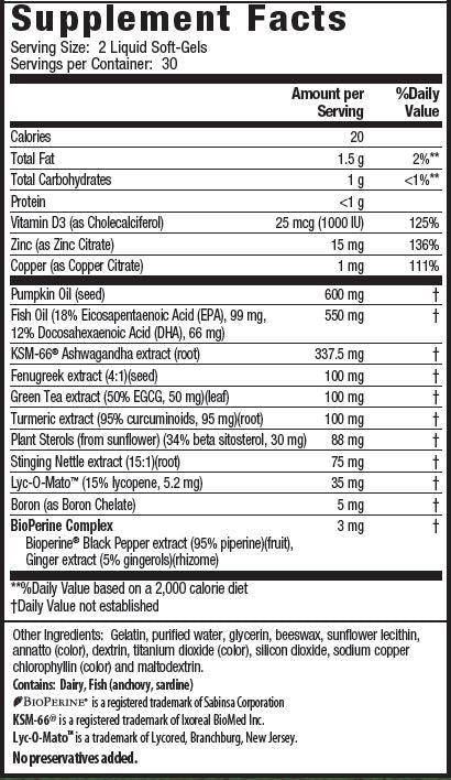 Plus Targeted Male Nutrition including Pumpkin Seed Oil, Essential Fatty Acids from Fish Oil, Zinc, and Vitamin D3.* Finally, everything a man needs–in