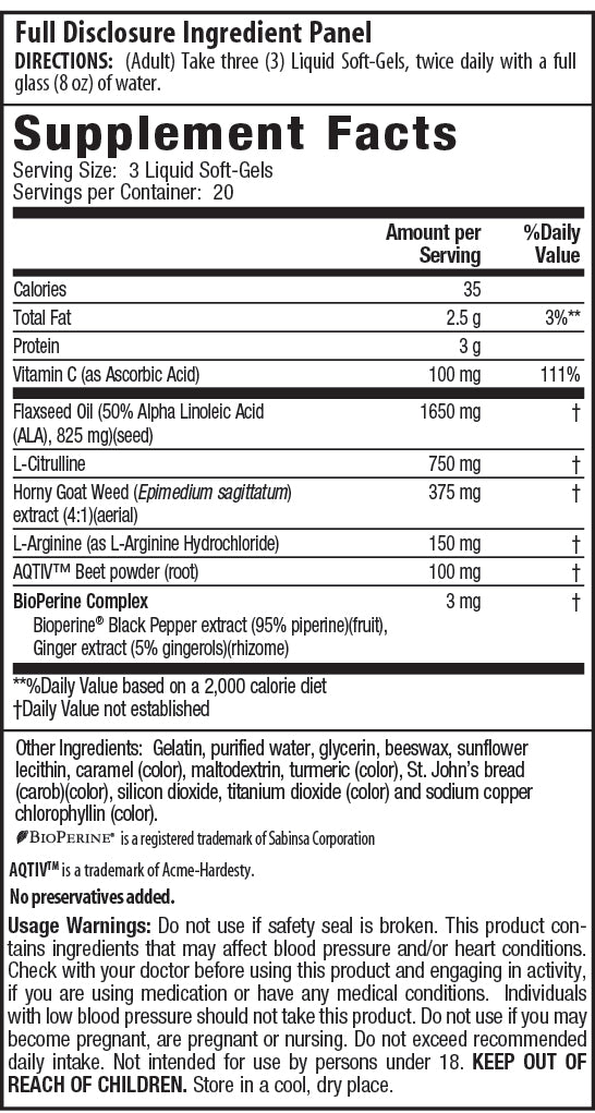 Nitric Oxide Booster - Nitric Oxide is the primary blood flow stimulating molecule produced by the body. Its production requires the availability of nutritional precursors derived from the diet. This formula delivers three Nitric Oxide supportive nutrients including Beet Root powder, L-Arginine, and L-Citrulline to boost nitric oxide production and enhance blood flow throughout the body.